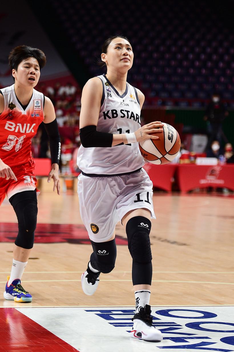 이번 시즌부터 KB 유니폼을 입은 강이슬은 플레이오프 1차전에서 8점 6리바운드 2어시스트 2스틸에 그쳤다. 특히 장기인 3점슛 5개를 모두 놓쳤다.