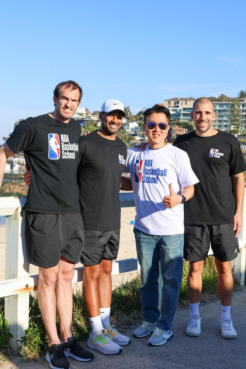사진 좌측부터 Ben O’Neill (NBA Basketball School대표), Josh Cardoza(NBA Basketball School운영총괄), 이창호 (위코플레이 대표), Nico Loureiro (NBA Basketball School 테크니컬 디렉터) at 본다이 비치