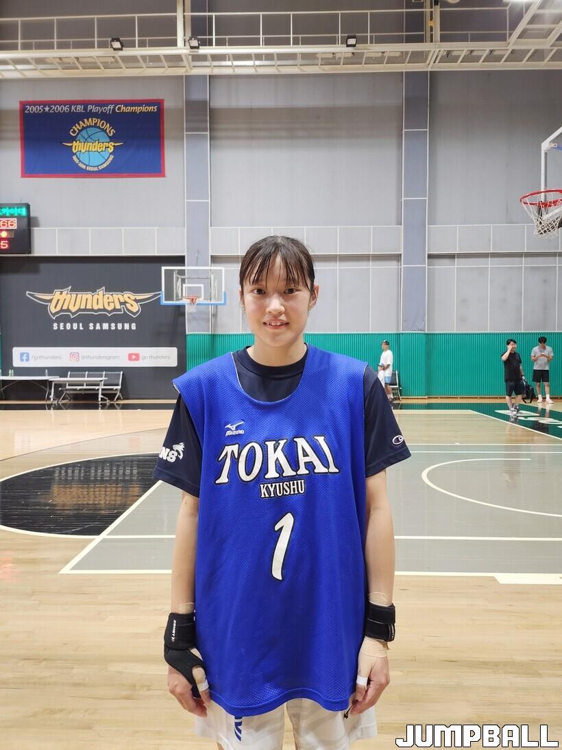 일본 도카이대는 15일 용인 삼성트레이닝센터(STC)에서 벌어진 용인 삼성생명과의 연습경기에서 66-74로 졌다. 결과는 패배였지만, 도카이대에 유독 돋보이는 한 명이 있었다. 단신 가드 모리구치 아카네. 지난 시즌 고양 데이원에서 뛰었던 아시아쿼터 모리구치 히사시의 동생이며 빠른 스피드와 정확한 슛을 갖춘 팀 내 에이스다.