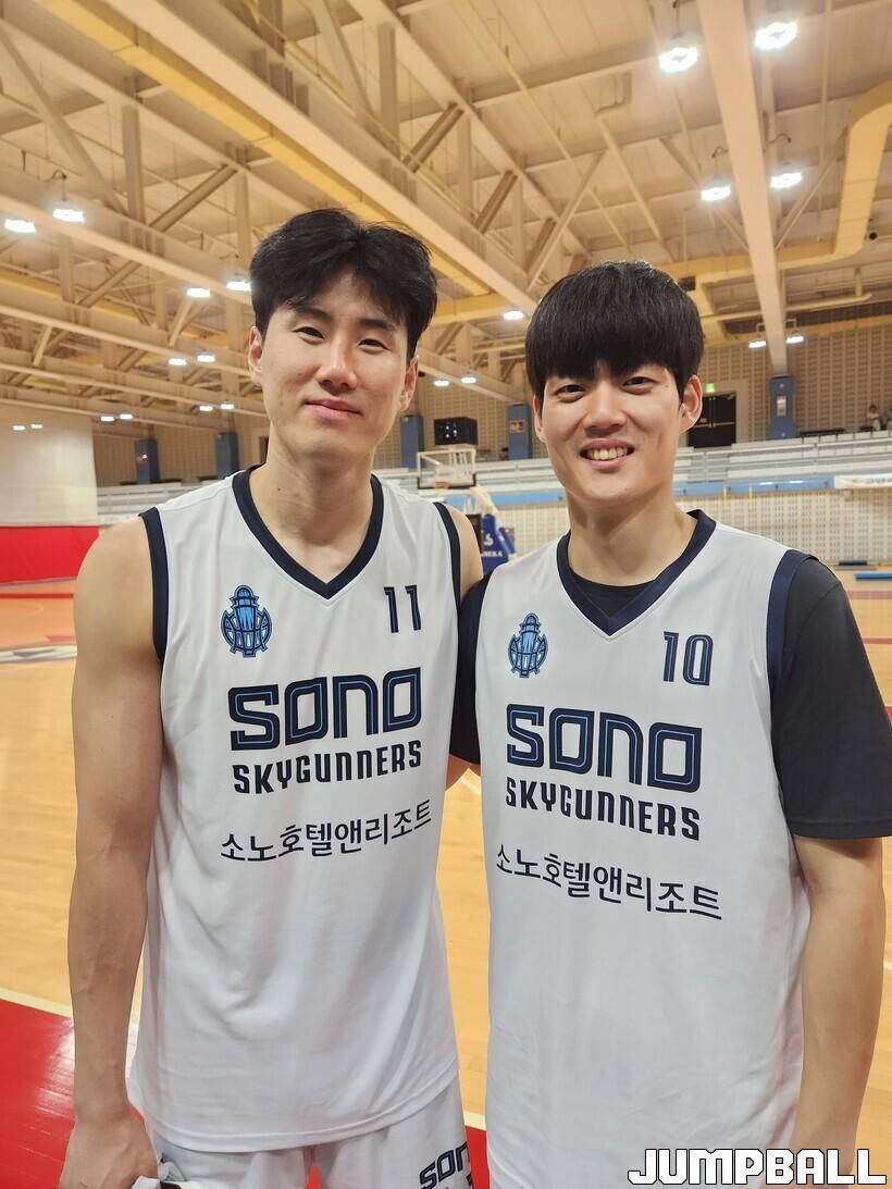 [점프볼=고양/조영두 기자] 김민욱(33, 205cm)과 안정욱(23, 193cm)이 10년 만에 소노에서 재회했다.