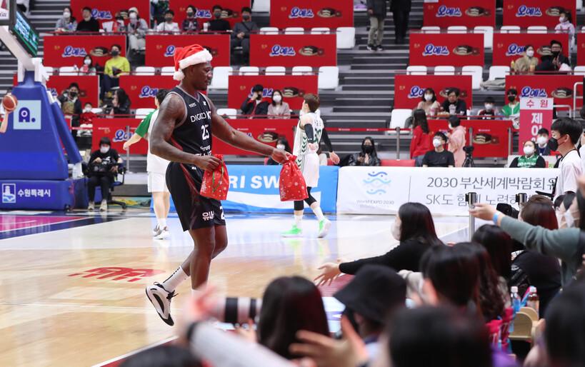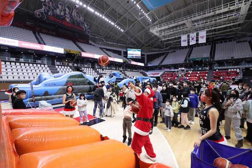 수원 KT는 25일 원주 DB와의 3라운드 맞대결에서 농구 팬들과 함께 다양한 크리스마스 행사를 성황리에 진행했다.