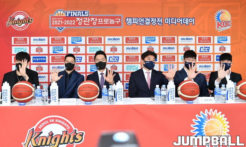 KBL은 29일 KBL센터에서 2021-2022 KGC인삼공사 정관장 프로농구 챔피언결정전 미디어데이를 개최했다. 서울 SK는 전희철 감독과 김선형, 최준용, 안양 KGC는 김승기 감독과 오세근, 전성현이 참석했다.