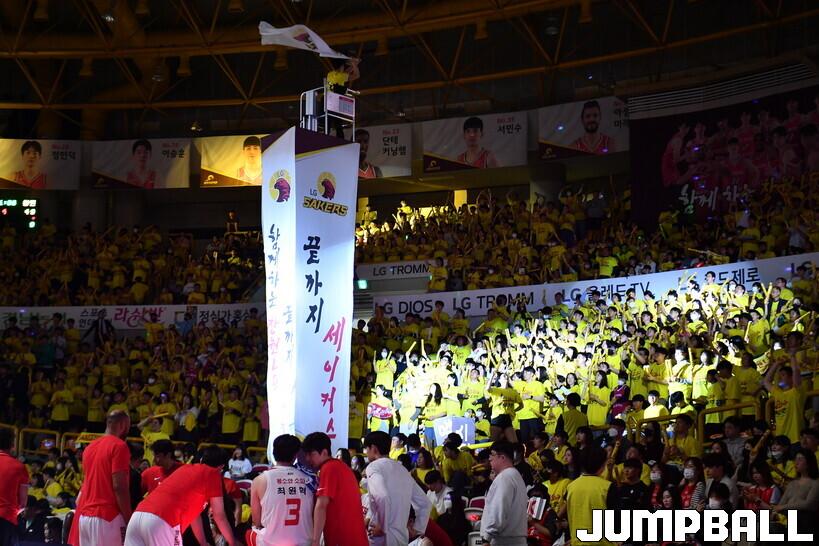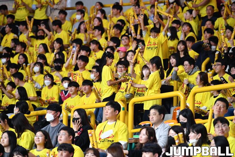 1차전, 2차전이 열렸던 창원체육관은 노란 물결이 일었다. 1차전은 4275명의 관중이 찾아와 시즌 홈 경기 최다 관중 기록을 경신했다. 2차전은 이보다 더 많았다. 4820명이 경기장을 찾았다. 4시즌 만에 찾아온 봄 농구에 팬들이 얼마나 격하게 환호하는지 알 수 있는 부분이었다.