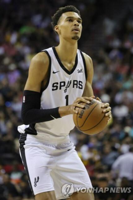 프랑스 출신의 224cm 빅맨 웸반야마는 ‘르브론 제임스 이후 최고의 재능’이라는 극찬과 함께 2023 NBA 드래프트 1순위로 샌안토니오 스퍼스에 지명됐다. 윙스팬이 243.8cm에 달하는 가운데 안정적인 볼 핸들링, 슈팅능력까지 두루 지녀 큰 기대를 받고 있다. 서머리그 첫 경기에서 야투율 15.4%(2/13)에 그쳤지만, 2번째 경기에서는 3점슛 2개 포함 27점 12리바운드 3블록슛으로 활약하며 어느 정도 의문부호를 지웠다.