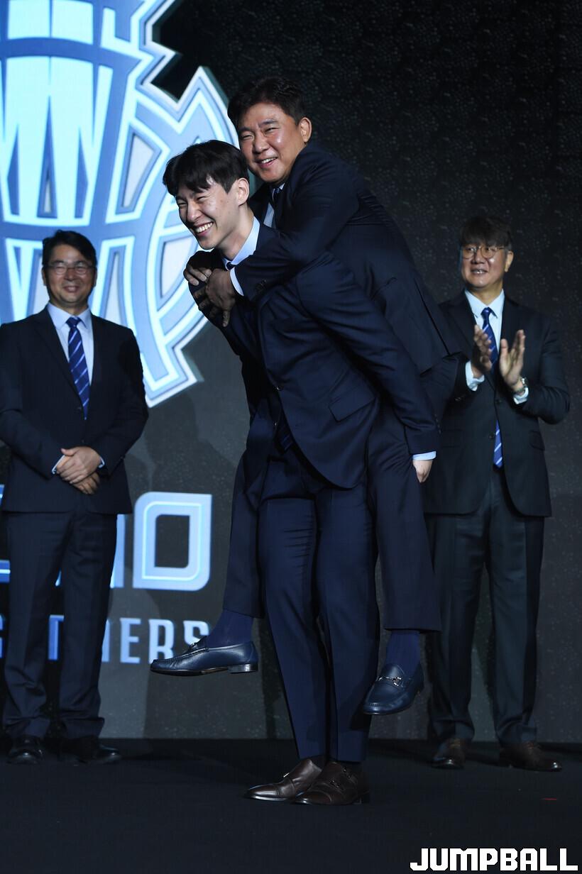 창단식 중 이정현은 지난 시즌 자신을 성장시켜준 김승기 감독에게 감사를 표했다. 사회를 맡은 연예인 김용만은 어부바를 시켰고, 이정현은 김승기 감독을 업었다.