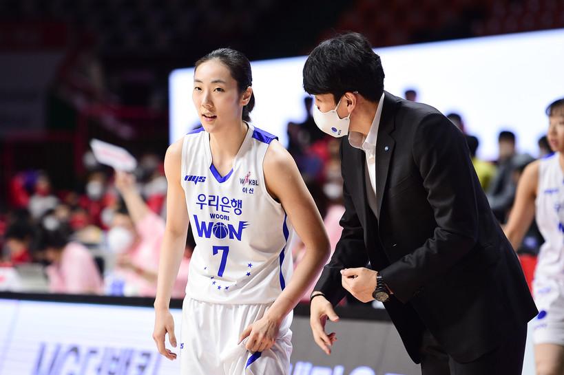 위성우 감독이 이끄는 아산 우리은행은 27일 부산사직체육관에서 열린 부산 BNK썸과의 삼성생명 2021~2022 여자프로농구 정규리그 원정경기에서 62-78로 패했다. 2위 우리은행은 21승 9패로 정규리그를 마쳤다.