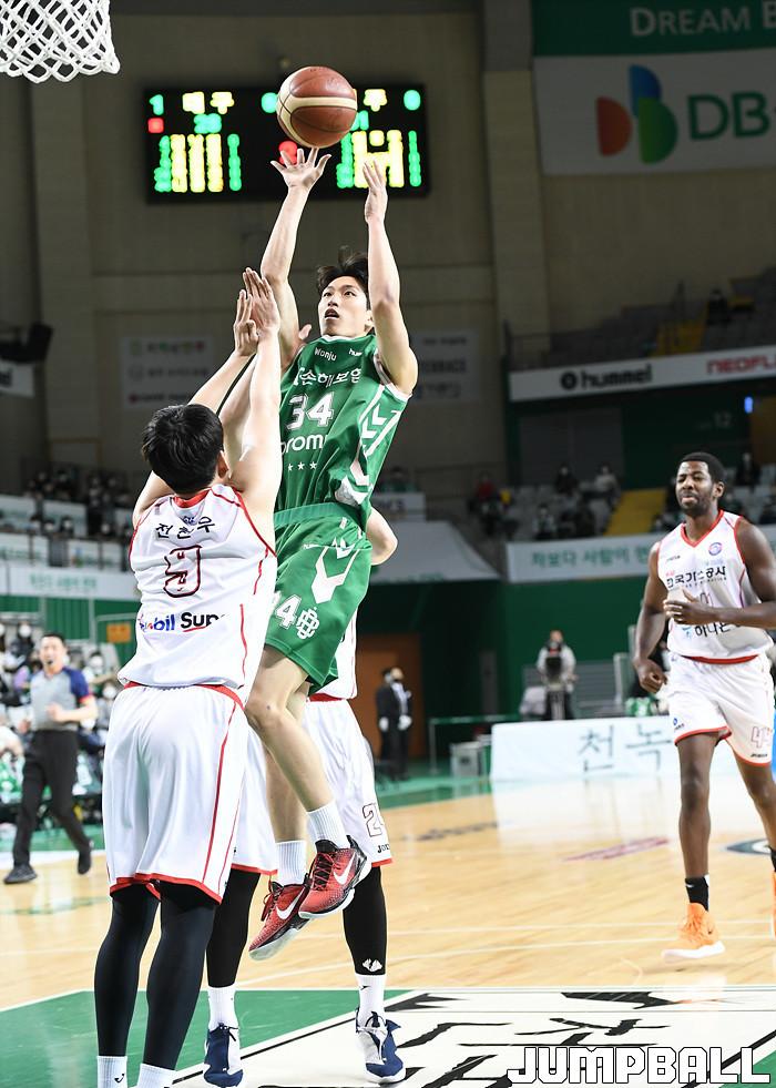 대구 한국가스공사는 19일 원주종합체육관에서 열린 2021-2022 KGC인삼공사 정관장 프로농구 원주 DB와의 경기에서 76-75로 승리했다.
