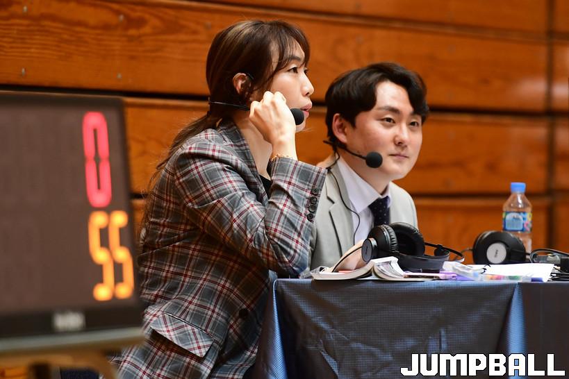 28일 수원대 체육관에서 열린 2022 KUSF 대학농구 U-리그 수원대와 광주대의 경기, 백지은 해설위원이 해설을 하고 있다.