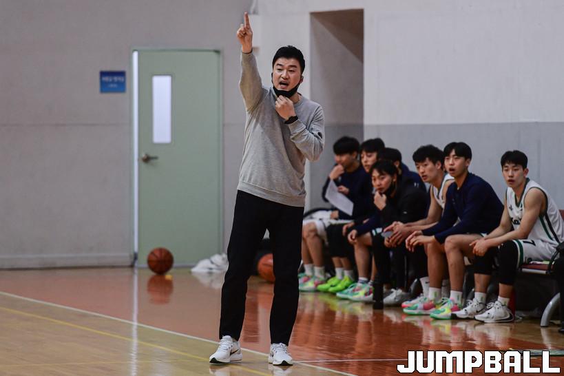 13일 동국대학교 체육관에서 열린 2022 KUSF 대학농구 U-리그 동국대와 건국대의 경기, 건국대 문혁주 코치가 선수들에게 지시를 하고 있다.