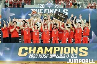14일 고려대 화정체육관에서 열린 2023 KUSF 대학농구 U-리그 고려대와 연세대의 챔피언결정전 경기, 고려대가 60-57로 연세대에 승리하며 우승을 차지했다. [점프볼=안암/유용우 기자]