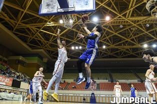 4일 한양대학교 올림픽체육관에서 열린 2023 KUSF 대학농구 U-리그 한양대와 동국대의 경기, 동국대 이대균이 점프슛을 시도하고 있다.