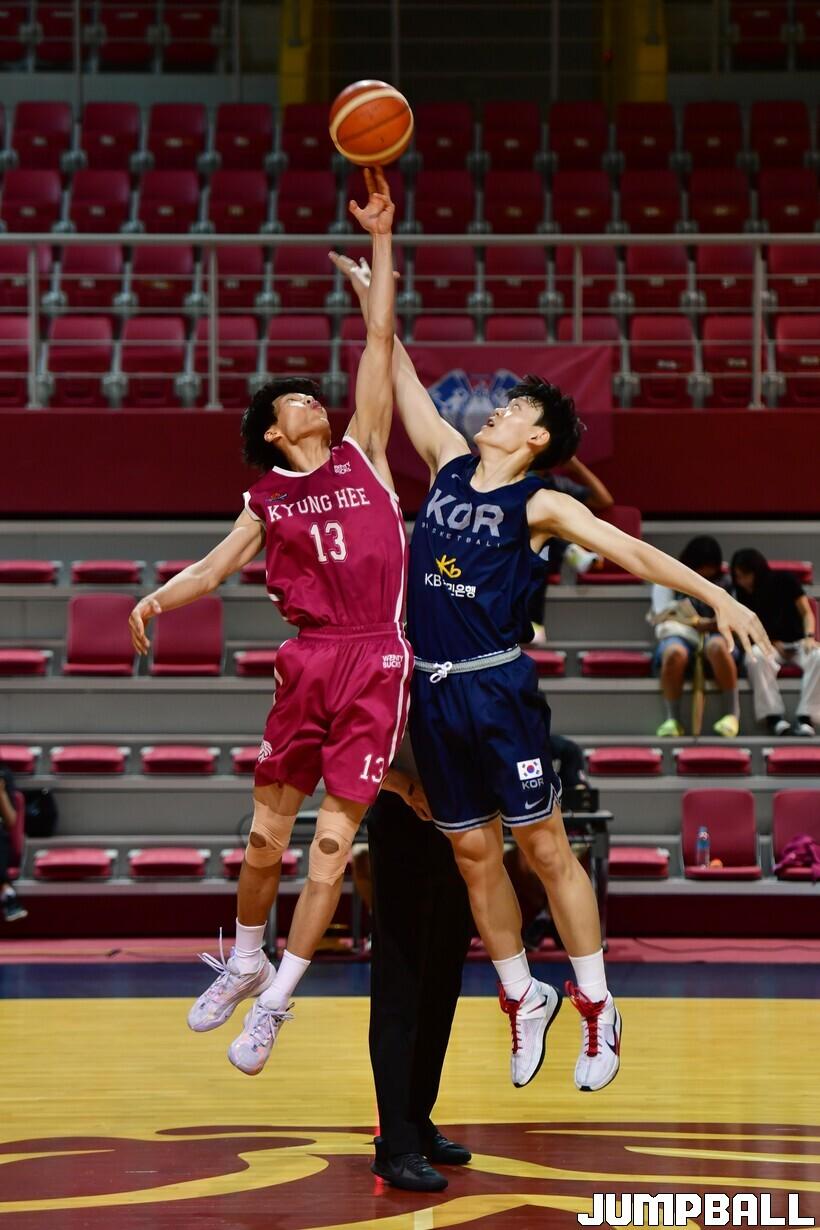 '2023 FIBA U16 아시아선수권대회'에 나설 남자 청소년 대표팀은 22일 경희대학교 국제캠퍼스 선승관에서 경희대와 국군체육부대 상무농구단과 연습경기를 가졌다. 대표팀은 오는 9월 17일 카타르 도하에서 열릴 아시아선수권 대회를 위해 구슬땀을 흘리고 있다.