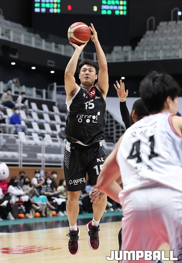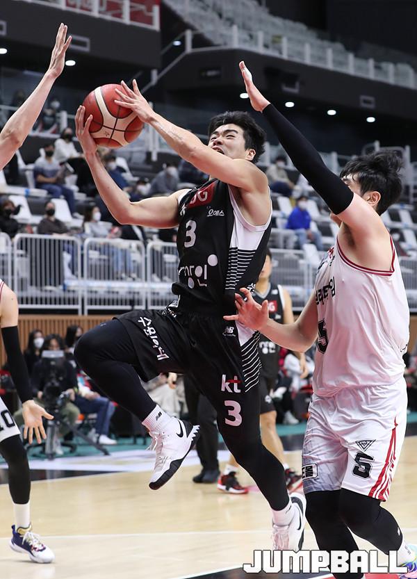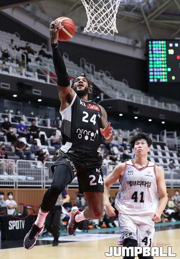수원 KT는 31일 오후 수원 KT 소닉붐 아레나에 열린 '2021-2022 KGC인삼공사 정관장 프로농구' 안양KGC 인삼공사와의 1라운드 경기에서 86-63으로 승리했다.