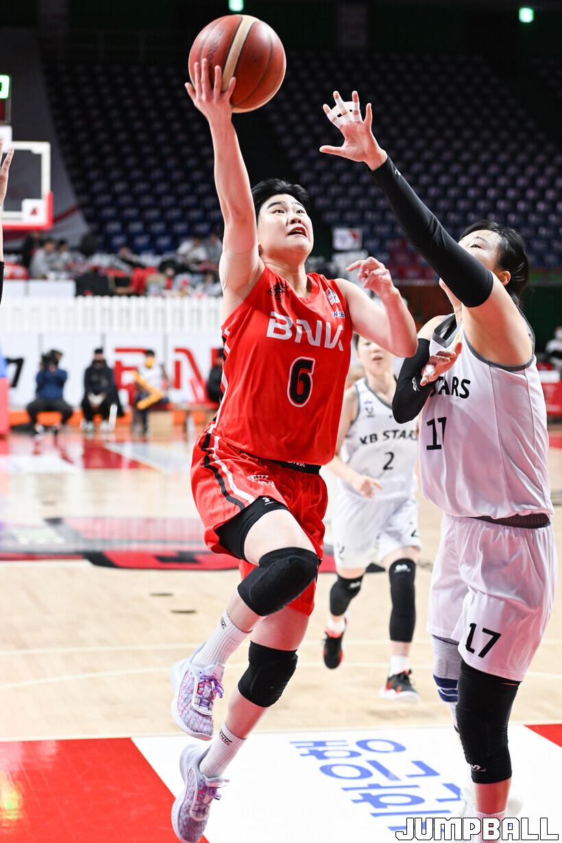 BNK는 한 번 잡은 흐름을 계속 이어나갔다. 4쿼터 7분 17초를 남기고 진안의 돌파로 51-41, 10점 차이로 벌리며 승기를 잡았다.