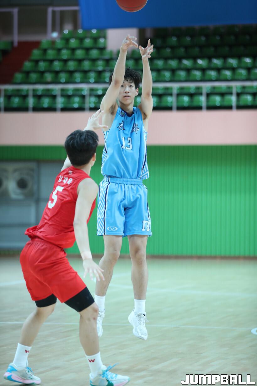 휘문고의 끈질긴 추격을 뿌리칠 수 있는 원동력도 이찬영의 다재다능함이었다. 특히나 하프라인을 넘어와서, 혹은 세트오펜스에서 잽스텝에 이은 3점슛이 위력적이었다. 수비가 외곽으로 견제나오면 바로 골밑을 공략하는 센스까지 돋보였다.