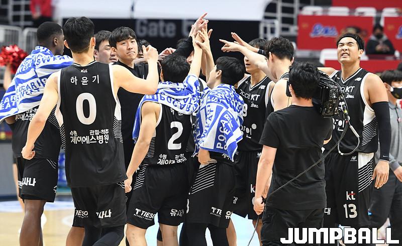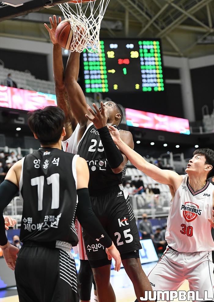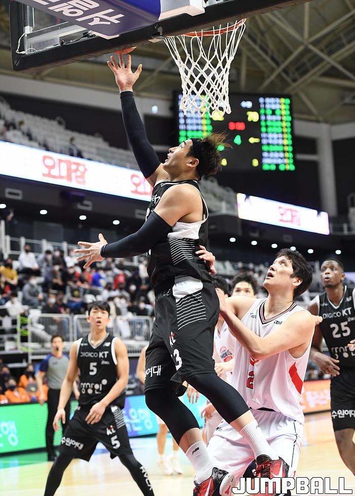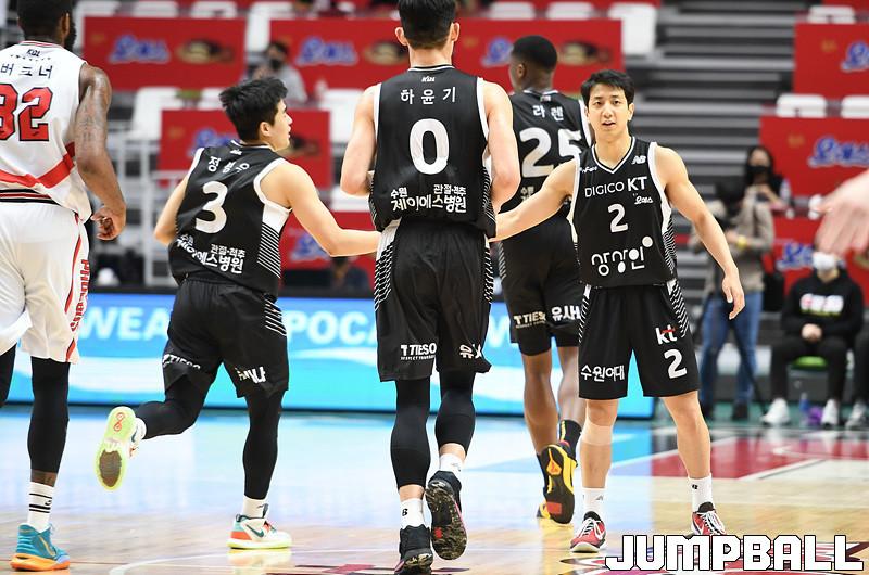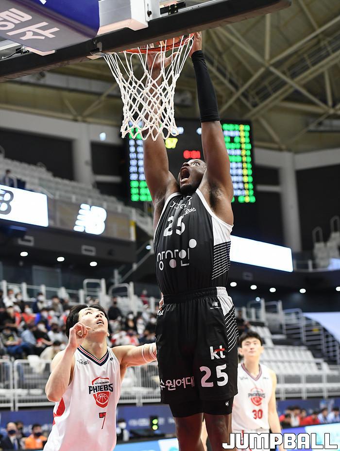 수원 KT는 18일 수원 KT 소닉붐 아레나에서 열린 2021-2022 KGC인삼공사 정관장 프로농구 6라운드 울산 현대모비스와의 홈 경기에서 88-69로 이겼다.