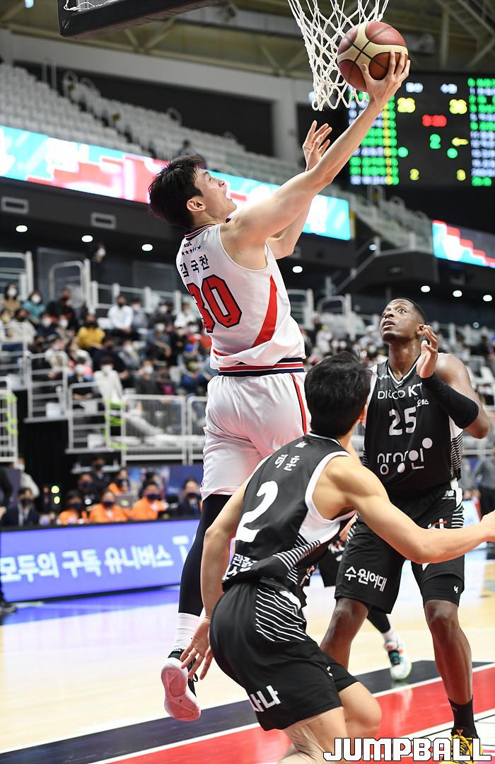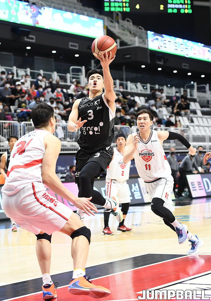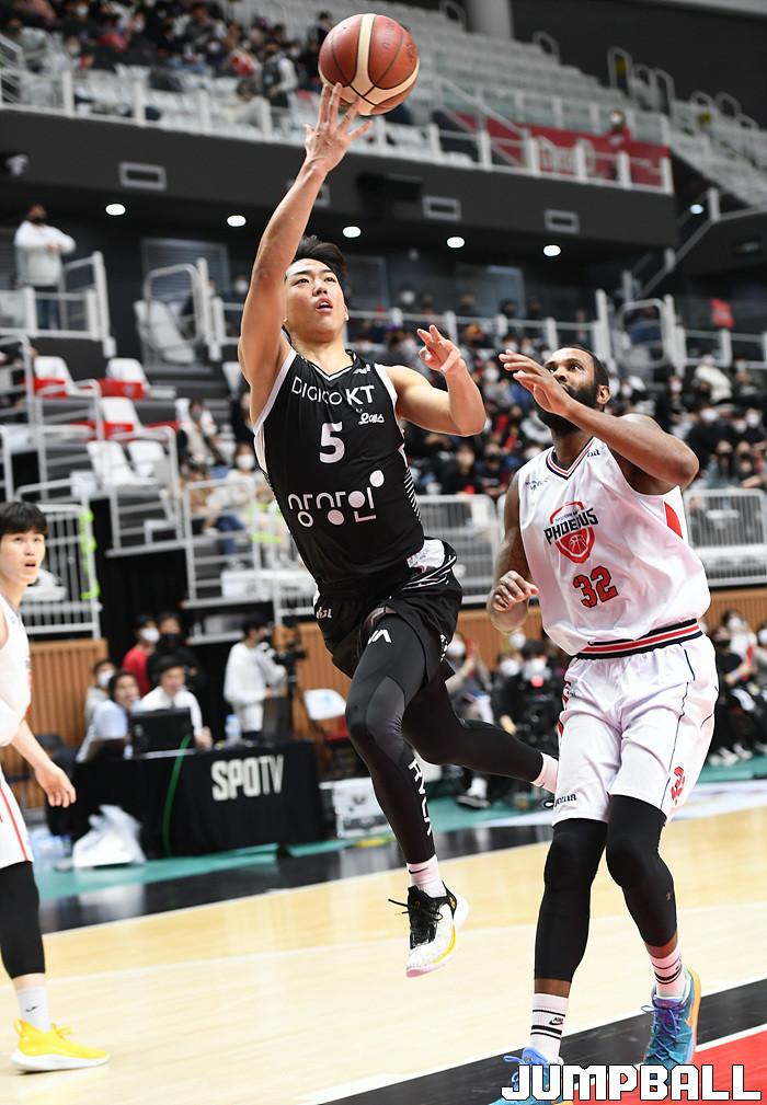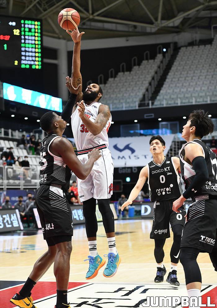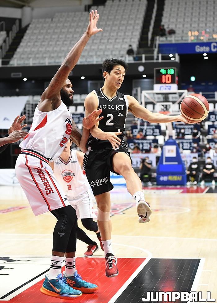 수원 KT는 18일 수원 KT 소닉붐 아레나에서 열린 2021-2022 KGC인삼공사 정관장 프로농구 6라운드 울산 현대모비스와의 홈 경기에서 88-69로 이겼다.