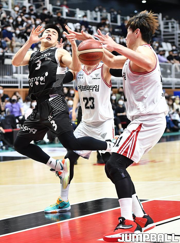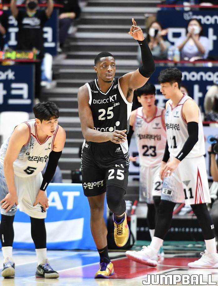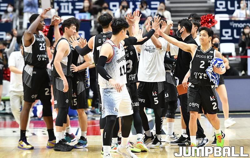 수원 KT는 21일 수원 KT 소닉붐 아레나에서 열린 2021-2022 KGC인삼공사 정관장 프로농구 4강 플레이오프 1차전 안양 KGC와의 홈 경기에서 89-86으로 이겼다.