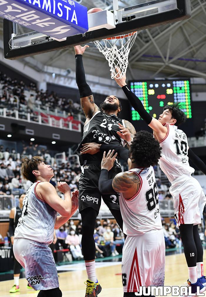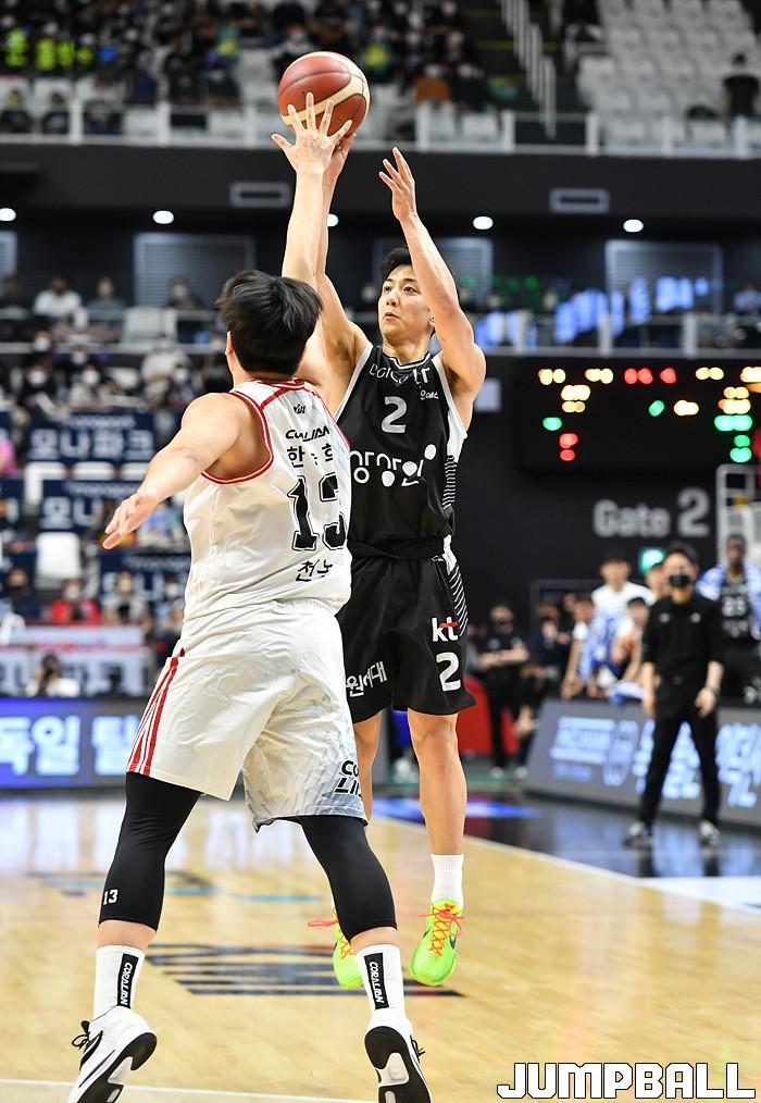 허훈은 3점슛 4개 포함 28점 3리바운드 6어시스트를 기록하고 정성우도 16점 4리바운드로 힘을 보탰다. 여기에 제공권 싸움(41-29)에서도 크게 앞선 것도 승리 원동력이 됐다.