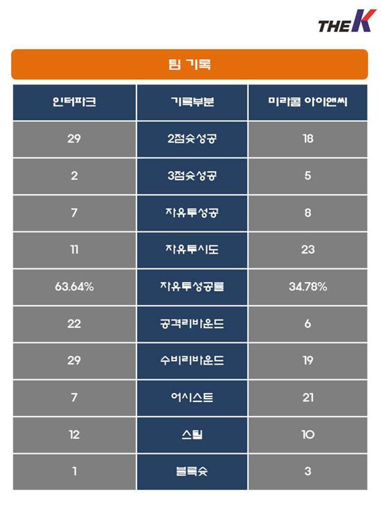 미라콤 아이앤씨는 임종오가 3쿼터 3점슛 2개를 적중시키는 등, 10점을 몰아쳐 쾌조의 슛감을 뽐냈다. 임상동, 백종준이 나서 골밑을 사수했고, 이효은, 황경환이 내외곽을 넘나들어 동료들 뒤를 받쳤다. 하지만, 속공을 연달아 허용한 탓에 수비조직력이 급격하게 흔들렸다. 인터파크는 박영환, 김정연이 연달아 득점을 올려 52-38까지 점수차를 벌렸다.