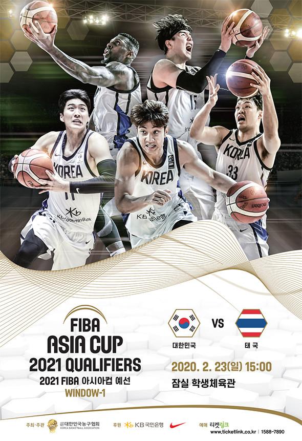 한국 남자농구대표팀은 오는 2월 17일부터 25일까지 국제농구연맹(FIBA) 아시아컵 2021 예선(WINDOW-1)전을 치른다. 이번 예선은 홈앤어웨이 방식으로 열리는 가운데 홈 경기인 2월 23일 잠실학생체육관에서 열리는 태국전에 대한 티켓 오픈은 오는 13일 오후 2시, 티켓링크에서 진행된다.
