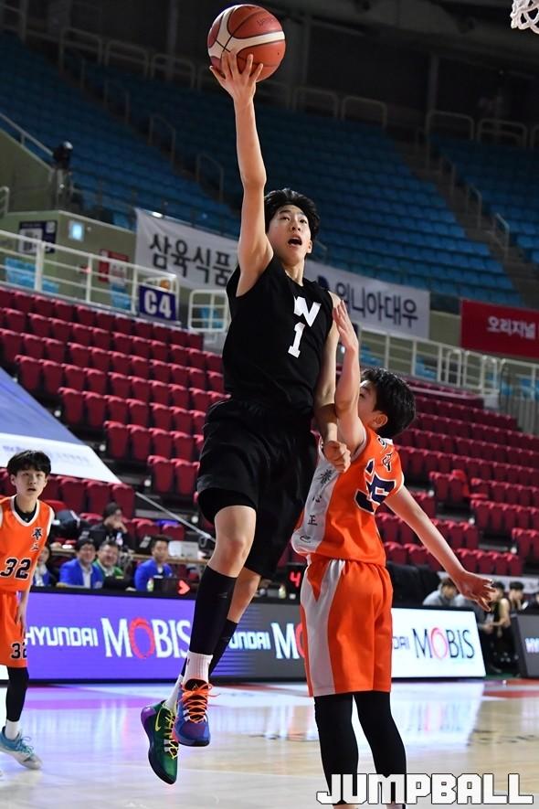 휘문중은 16일 인천삼산월드체육관에서 열린 2020 KBL 유소년 최강전 양정중과의 8강 마지막 경기에서 93-66으로 승리했다. 4강행 막차 티켓을 거머쥔 가운데, 초반부터 32-15, 더블 스코어 이상의 격차를 만들어 낸 건 맏형 김승우. 그는 이날 12분 6초만 뛰고도 13득점 4리바운드 1어시스트로 활약했다.