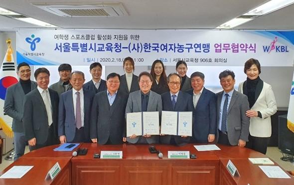 18일 서울특별시 교육청 9층 회의실에서 WKBL(총재 이병완)과 서울특별시 교육청(교육감 조희연)의 학교스포츠클럽 활성화에 관한 업무 협약식이 열렸다. 협약식에는 WKBL 이병완 총재, 서울특별시 조희연 교육감 등 양 기관 관계자 10여 명이 참석했다.