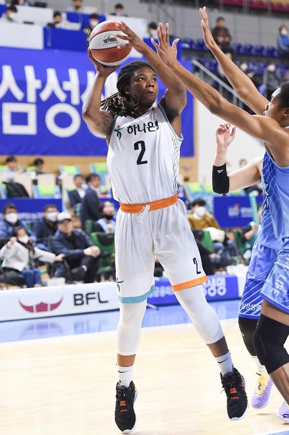 [점프볼=용인/김기홍 인터넷기자] 마이샤가 커리어하이 34득점을 올린 하나은행이 2연승을 달렸다.