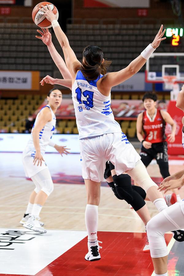 우리은행은 이날 고전했다. 2쿼터 한 때 20-33, 13점 차이까지 뒤졌다. 김소니아의 공격 리바운드 이후 득점으로 추격에 시동을 건 뒤 접전을 펼치던 4쿼터 중반 이후 고른 선수들의 득점으로 역전에 성공했다. 특히 김정은의 점퍼 두 방이 결정적이었다.