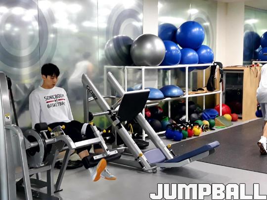 한편, 1층 웨이트트레이닝장에는 체육관보다 더 많은 선수들이 재활 훈련을 하고 있었다. 지난 3x3 코리아투어에서 물집이 잡히는 등 발바닥에 부상을 입은 양홍석과 정강이 피로골절로 고생한 김기윤은 서로 의지하며 재활 훈련을 해냈다.