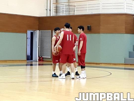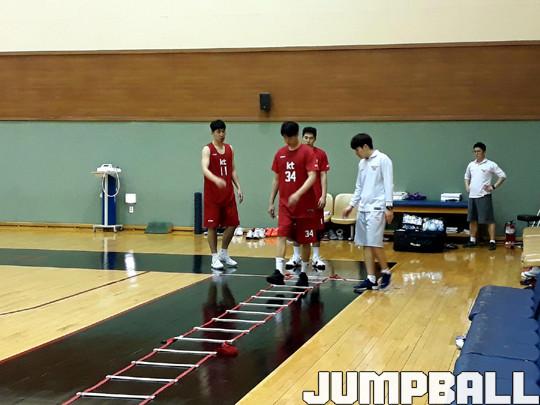 박지훈과 김영환은 배길태 코치와 함께 드리블 훈련에 나섰다. 드리블 뒤, 바닥에 있는 테니스 공을 잡는 방식으로 순발력을 키우려 노력했다. 박철호와 이정제, 김우재는 서로 포스트 플레이를 펼치며 실전에 가까운 훈련을 진행했다.