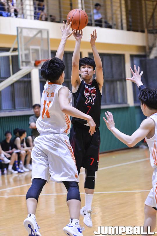 3명의 가드가 사이좋게 득점을 나눠가진 휘문고는 이승구(190cm, F)와 김진호(191cm, F)까지 적극 공격에 참가하며 송도고를 압박했다. 좋은 분위기를 이어간 휘문고는 전반까지 38-28로 앞섰다.