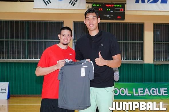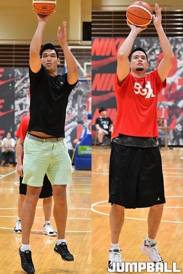 27일 서울 경복고 체육관에서 열린 2019 KBL 스쿨리그 서울B지역 예선대회에서 2008년 KBL 국내신인선수 드래프트에서 1,2순위로 나란히 프로 데뷔를 한 하승진과 김민수가 만났다. 최근 유튜버로 활동 중인 하승진이 KBL과 협의로 참가팀인 구일고 일일 코치로 함께한 가운데 김민수는 SK의 대표선수로서 이벤트 참가를 위해 현장을 찾은 것.