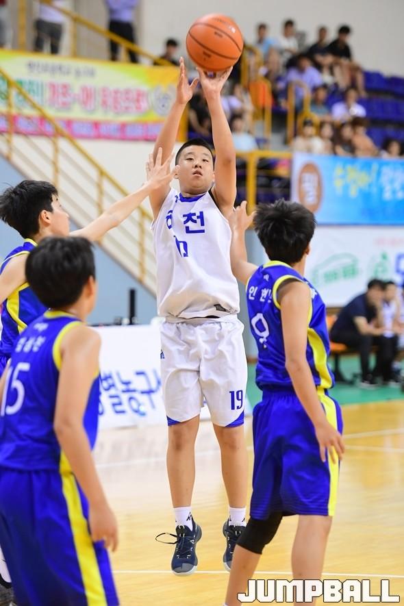 이날 임재윤(19득점 13리바운드)과 윤우참(10득점 22리바운드)이 동반 더블더블 활약을 펼치면서 귀중한 승리를 이끌었다. 전주송천초는 리바운드도 52-32로 압도했다. 수원매산초는 양우혁, 류준상, 신은찬이 각각 12점씩을 책임지며 접전 승부를 이끌었지만, 연장전 마지막 공격을 놓치면서 석패를 떠안았다.
