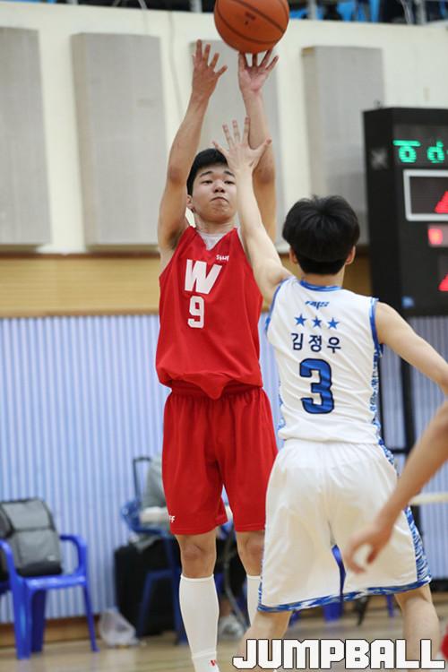 초반부터 높이 우위를 앞세워 치고나간 휘문고는 전반에만 62점을 기록하는 막강 화력을 뽐냈다. 정희현(202cm, C)과 이두원(204cm, C)의 트윈타워가 27점을 합작하며 포스트를 지키자 김 환(185cm, G)도 두 자릿수 득점을 기록하며 힘을 보탰다.