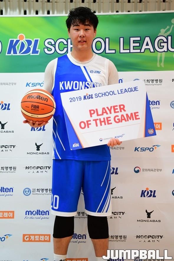 권선고는 6일 고양체육관 보조경기장에서 열린 2019 KBL 스쿨리그 고양 지역예선 고등부 2조 가좌고과의 경기에서 29-28로 승리했다. 박종혁이 12득점 14리바운드 2어시스트 3스틸 1블록으로 전방위 활약을 펼친 가운데, 권선고는 리바운드도 26-12로 압도했다. 가좌고는 김인겸이 14득점 5리바운드 7스틸로 고군분투를 펼쳤지만, 예선 2패를 기록하며 결승행이 좌절됐다.