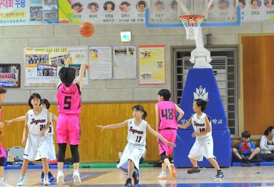 6일 성남 수정초등학교 체육관에서 열린 '제 8회 The K리그 한국,일본 유소년클럽 친선농구대회‘에서 성남 수정초가 일본 여자연합팀을 상대로 51-33, 승리를 거두었다.