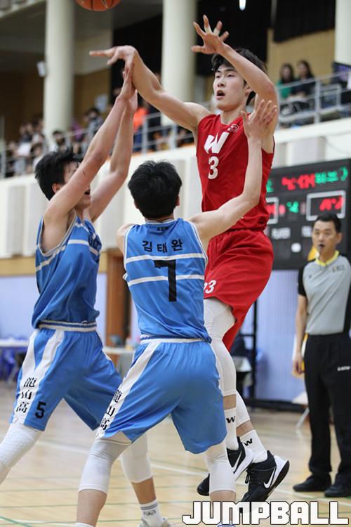 반면 휘문고는 높이 우위를 살리지 못했다. 휘문고의 포스트진은 상대의 트랩 수비를 유연하게 대처하지 못하며 어려움을 겪었다. 그나마 조환희(182cm, G)와 김 환(185cm, G)이 20점을 합작하며 공격 활로를 뚫었다.