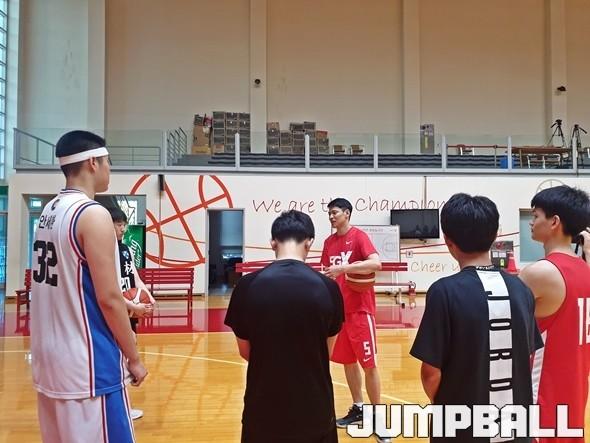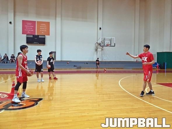 김선형이 주도한 스킬 트레이닝은 단순 드리블, 패스, 슛 훈련이 아닌 실전 훈련. 콘을 깔아 놓고 진행하는가 하면 속임 동작을 추가해 난이도를 높여 진행했다. “엘리트 스포츠를 하는 선수들이라 그런지 습득력이 좋다”며 선수들에게 칭찬의 말을 건네기도 했다.