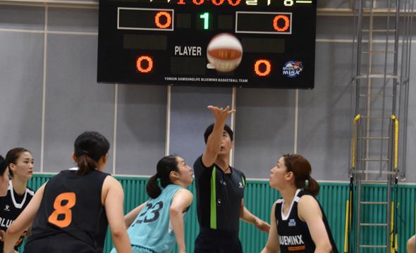 [점프볼=노경용 객원기자] 용인 삼성생명이 13일 삼성트레이닝센터에서 열린 부천 KEB하나은행과 연습게임에서 윤예빈의 15득점 활약을 앞세워 57-42로 승리했다.