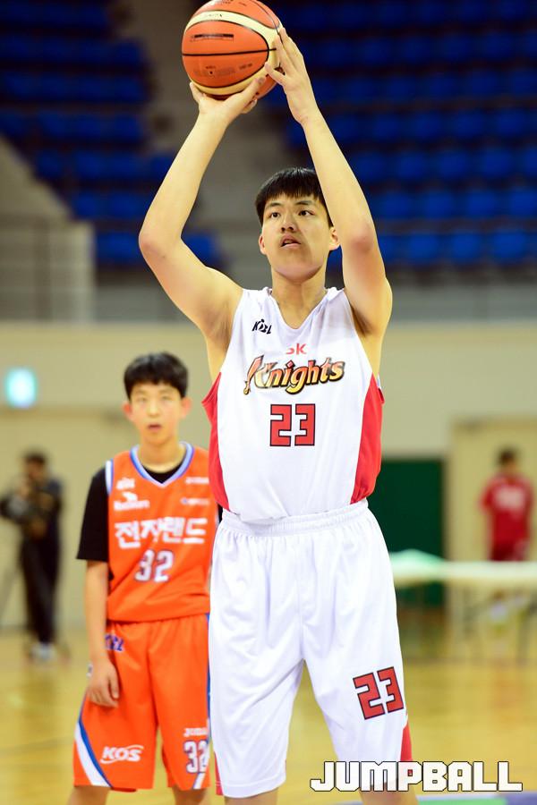 이 가운데 코트에 나서기만 해도 눈길을 사로잡는 존재감을 발휘하는 선수가 있다. 서울 SK 중등부 소속의 김성훈이다. 김성훈의 공식 신장은 2m, 대회 최장신이다.
