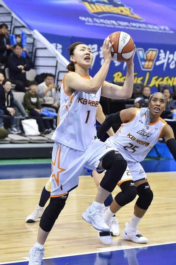 청주 KB스타즈는 29일 아산이순신체육관에서 열린 우리은행 2018-2019 여자프로농구 아산 우리은행과의 4라운드 맞대결에서 48-46으로 승리했다. 3연승을 달린 KB스타즈는 선두 우리은행과의 승차를 두 경기로 좁혔다. 올 시즌 상대전적도 2승 2패, 동률로 맞췄다.