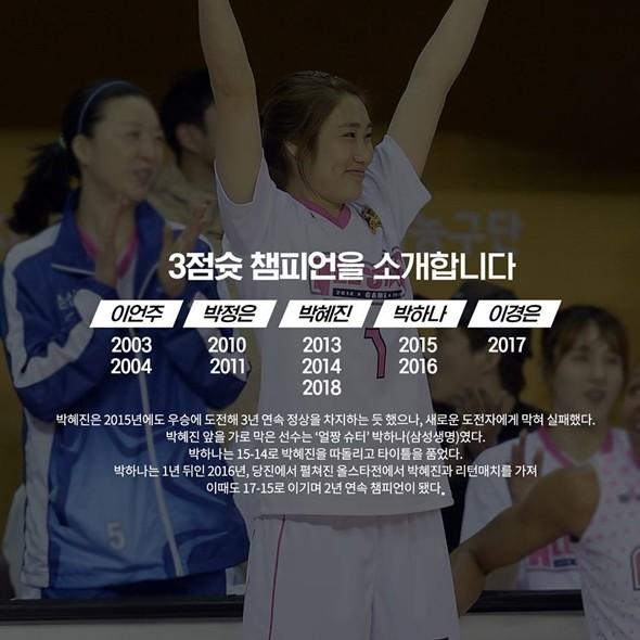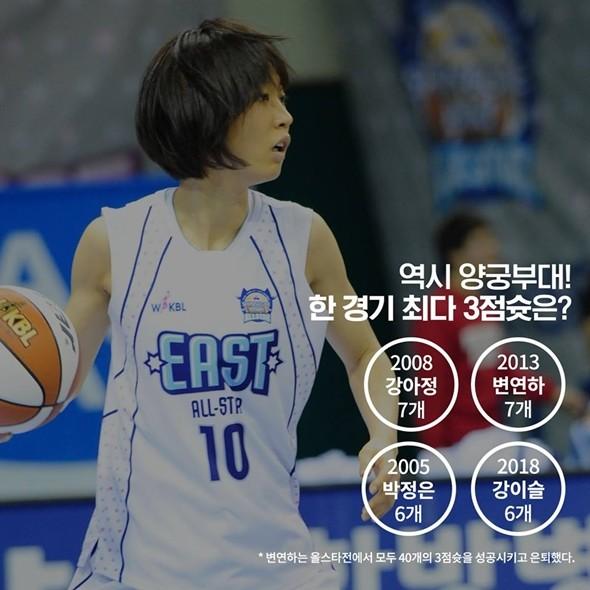 [점프볼=편집부] 오는 6일 서울 장충체육관에서 2018-2019 여자프로농구 올스타전이 출발을 알린다. 레전드들의 3X3 매치부터, 선수들과 아이돌이 함께하는 콜라보레이션 무대, 그리고 여자프로농구의 빛나는 별들이 수놓을 본무대까지. WKBL 팬들의 눈을 즐겁게 할 모든 준비가 끝났다. 이에 앞서 여자프로농구 무대를 빛냈던 레전드들이 남겨 놓은 수많은 기록들을 카드뉴스로 준비해봤다.