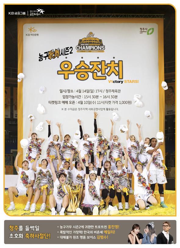 우리은행 2018-2019 여자프로농구 챔피언 청주 KB스타즈가 오는 14일 오후 5시 청주실내체육관에서 첫 통합우승을 기념하고 ‘여자농구특별시 청주’에서 팬들의 성원에 보답하기 위해 「농구歌舞 시즌2: 우승 잔치!!」를 개최한다.