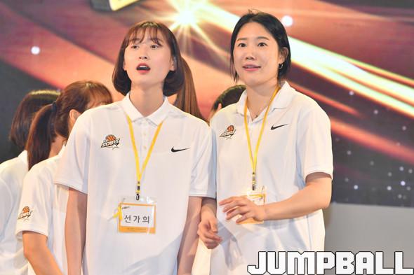 이날 KB스타즈는 안덕수 감독을 비롯해 선수단이 모두 참석했다. 미국으로 떠난 카일라 쏜튼은 영상을 통해 팬들 앞에 다가왔다.