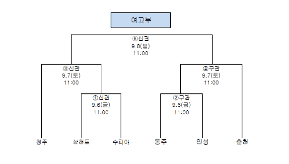 A조 1위 청주여고(2승), 2위 인성여고(1승1패), 3위 상주여고(2패)