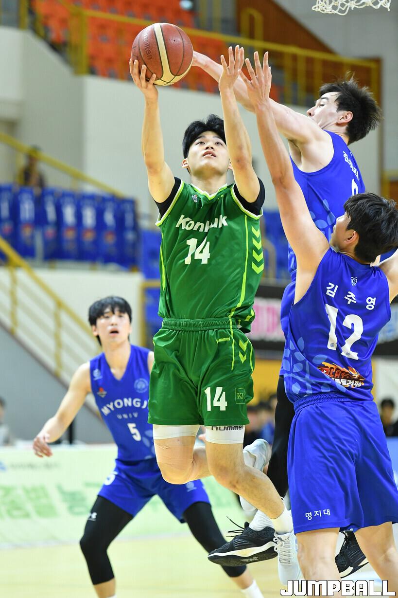올해 대학농구리그와 MBC배에서 명지대를 3번 모두 꺾었던 건국대는 조환희와 백경의 3점슛으로 6-2로 경기를 시작했다. 이후 2점에서 6점 차이를 오갔다.