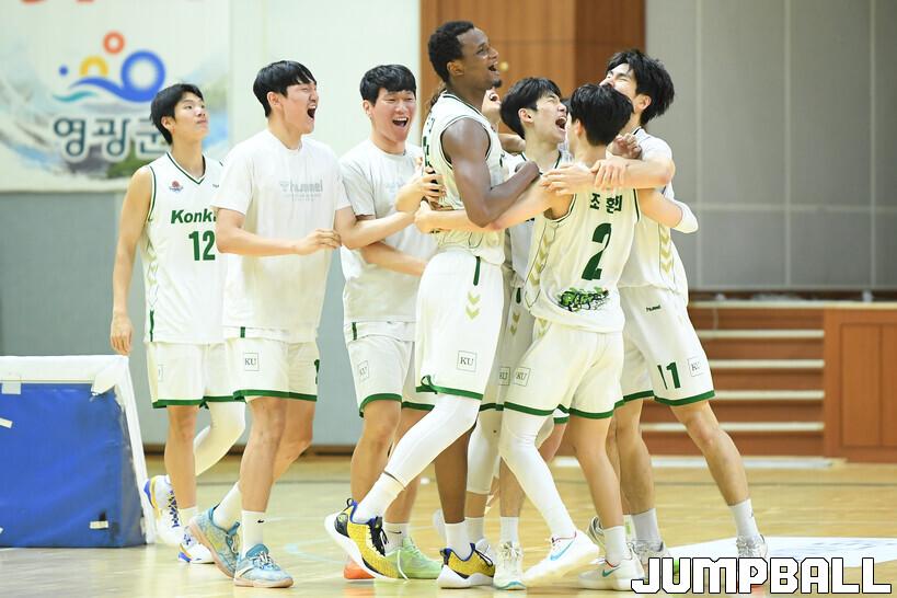 건국대는 프레디(18점 13리바운드 2스틸 2블록슛)가 더블더블을 기록하며 존재감을 뽐냈다. 백경(12점 7리바운드 2스틸 3점슛 4개)은 4쿼터 역전 3점슛 포함 50%의 성공률로 3점슛 4개를 터트리는 등 결정적인 순간마다 3점포를 가동했다. 김준영도 10점 6리바운드 6어시스트로 활약했다.