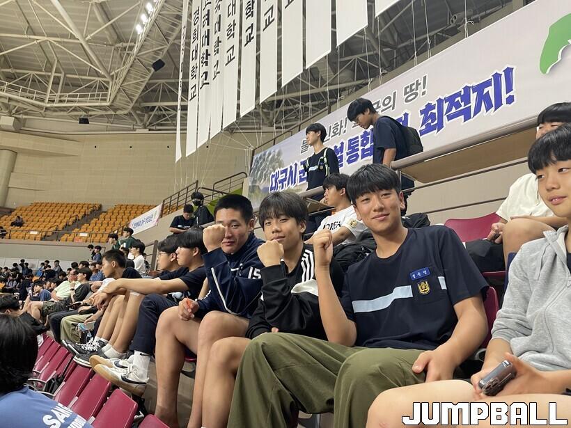 옆 자리에 앉아있던 성시율 군은 “나는 농구부는 아니다. 그래도 농구를 정말 좋아해서 학교 스포츠 클럽 농구를 다니고 있다. 나도 친구들이랑 따로 MBC배에 놀러 온 적이 있다. 이렇게 다 같이 온 것은 처음이다. 수업 대신 왔는데, 그래서 더 좋다”며 웃었다.