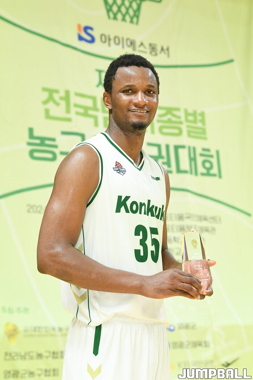 건국대 프레디는 5일 전남 영광스포티움 국민체육센터에서 열린 제79회 전국남녀종별농구선수권대회 동국대와의 남대부 결승에서 18점 13리바운드 2스틸 2블록슛으로 맹활약을 펼치며 팀의 승리(58-55)를 이끌었다. 대회 내내 골밑을 장악하며 팀에게 든든함을 안겼던 프레디는 그 공을 인정받아 최우수선수상(MVP)까지 수상하는 기쁨을 누렸다.